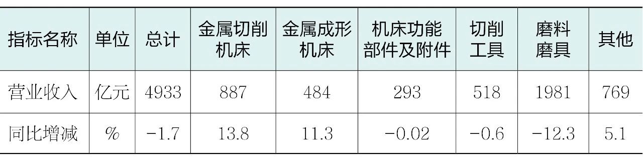 2025年上半年,机床工具行业完成营业收入4933亿元,同比下降1.7%,降幅较一季度收窄2.5个百分点。主要分行业中,磨料磨具分行业继续下降,机床功能部件及附件、切削工具分行业由一季度的同比增长转为下降,其他分行业则仍保持增长。