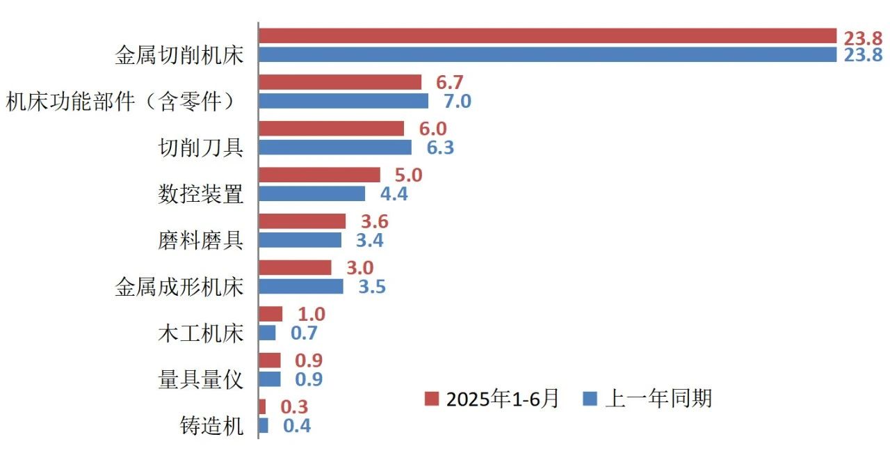 2025年上半年,机床工具行业实现利润总额93亿元,同比下降37.6%,降幅较一季度收窄28.1个百分点。主要分行业中,机床功能部件及附件分行业由一季度的同比增长转为下降,仅金属切削机床和金属成形机床分行业仍保持增长。